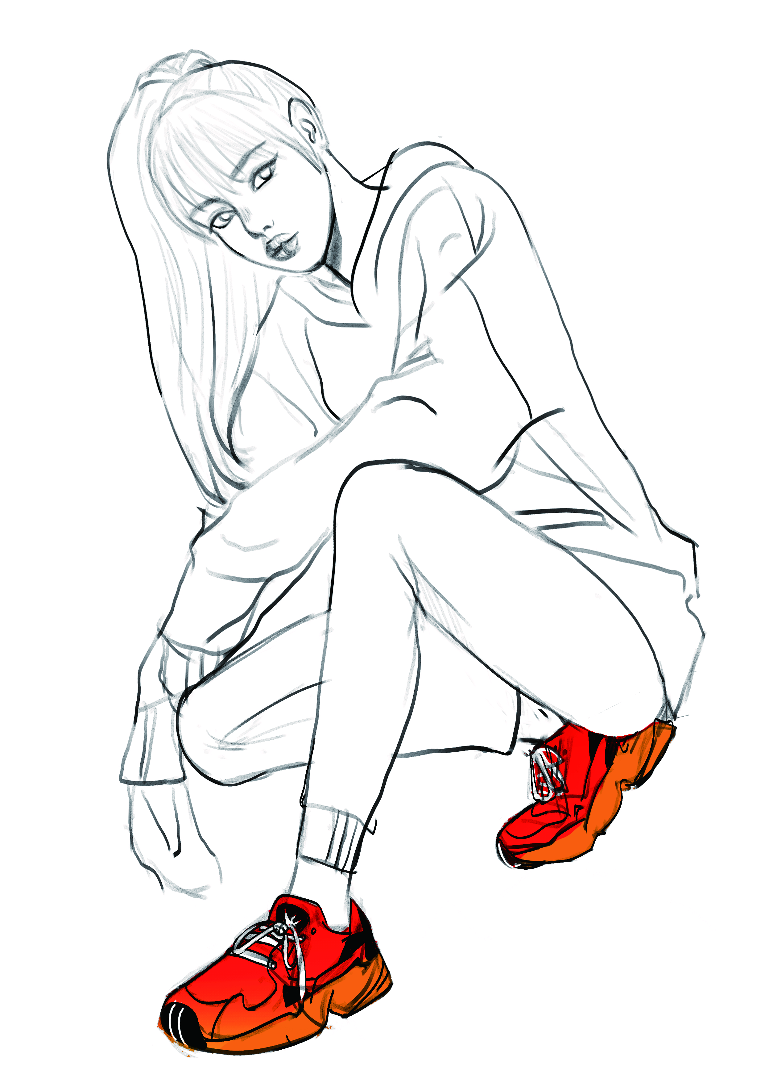 Básicamente las botas, los tennis tienen la misma base, podemos dibujar la suela y cubrir el zapato envolviendo el pie, dependiendo de la tela y el ajuste de esta puede estar más suelto o más ceñido al pie, al dibujar tratemos de pensar en el estilo del zapato.